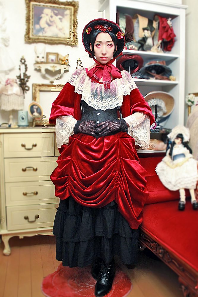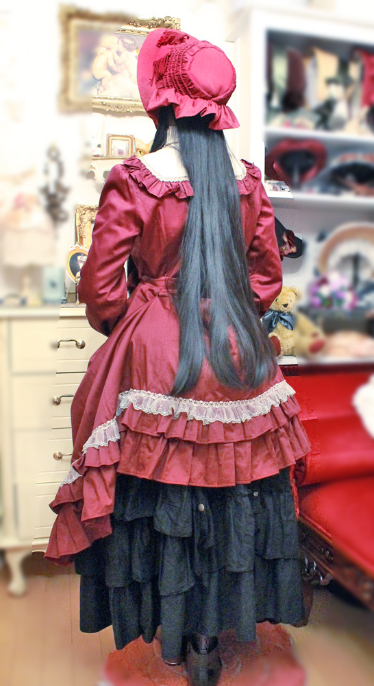 こちらは黒髪でスカートをバッスルに。