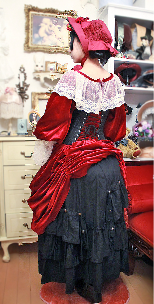これまでの写真と、ウィッグとバッスルにしてバンダースカートを見せるという点しか変えていません。